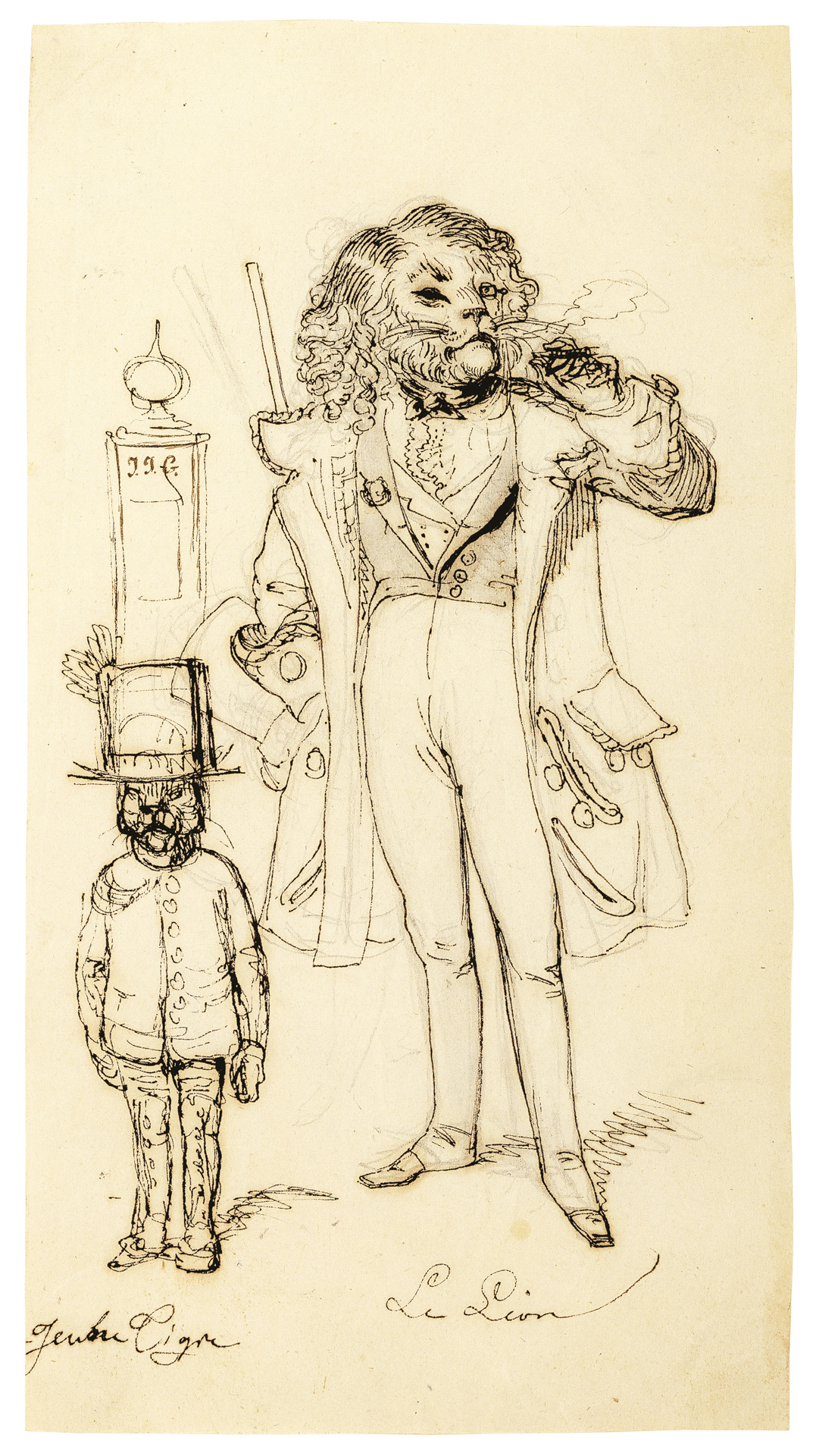 Un lion de Paris, 1841. Dessin préparatoire pour une planche hors-texte, «Voyage d’un lion d’Afrique»,