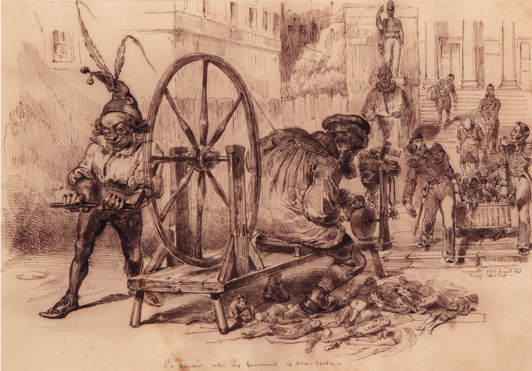 Encre brune, titré en bas et cachet sec JJG de la vente de l’atelier Grandville, 1853. La Caricature n° 92, 9 août 1832, pl. 187 . Charles Philipon commente dans son exemplaire: